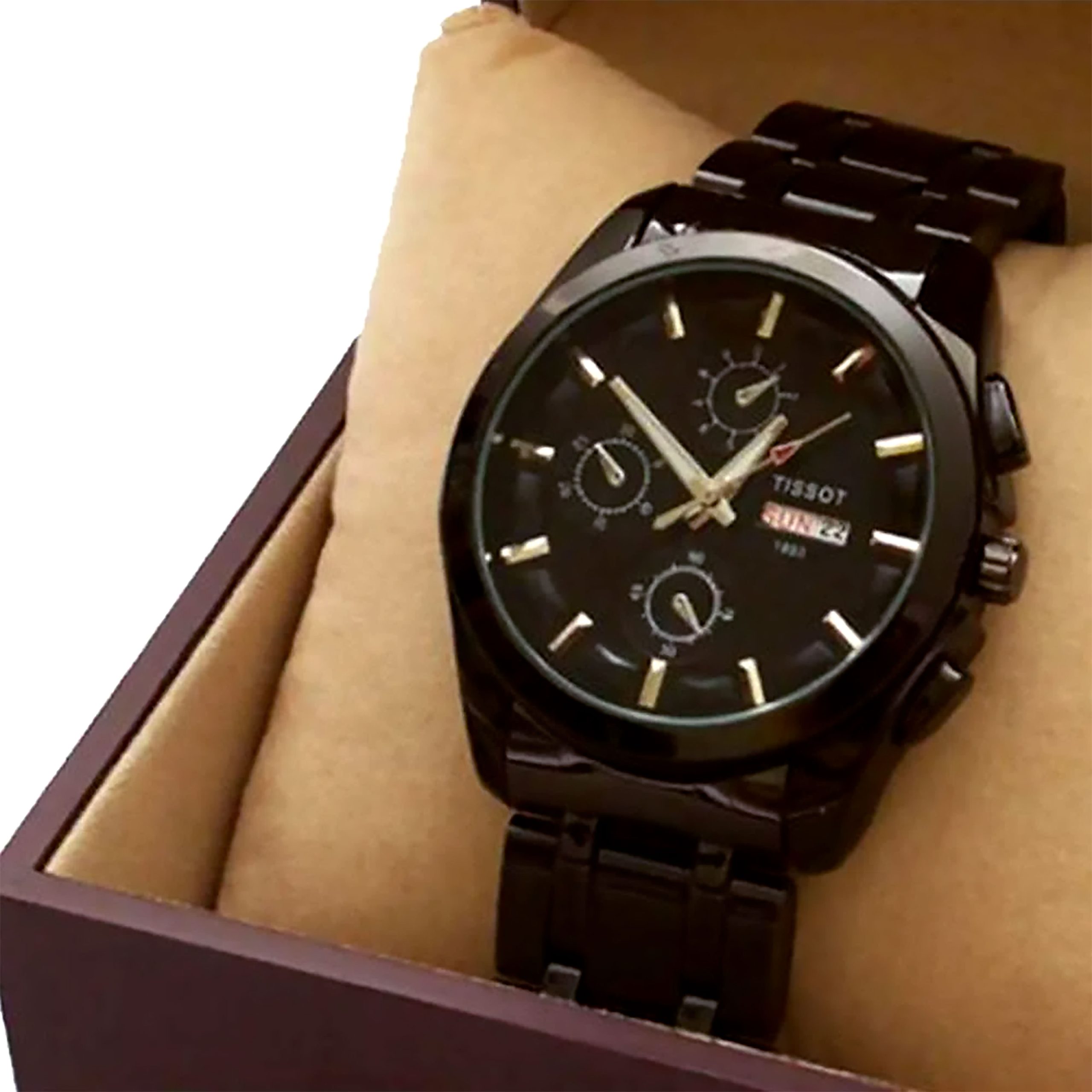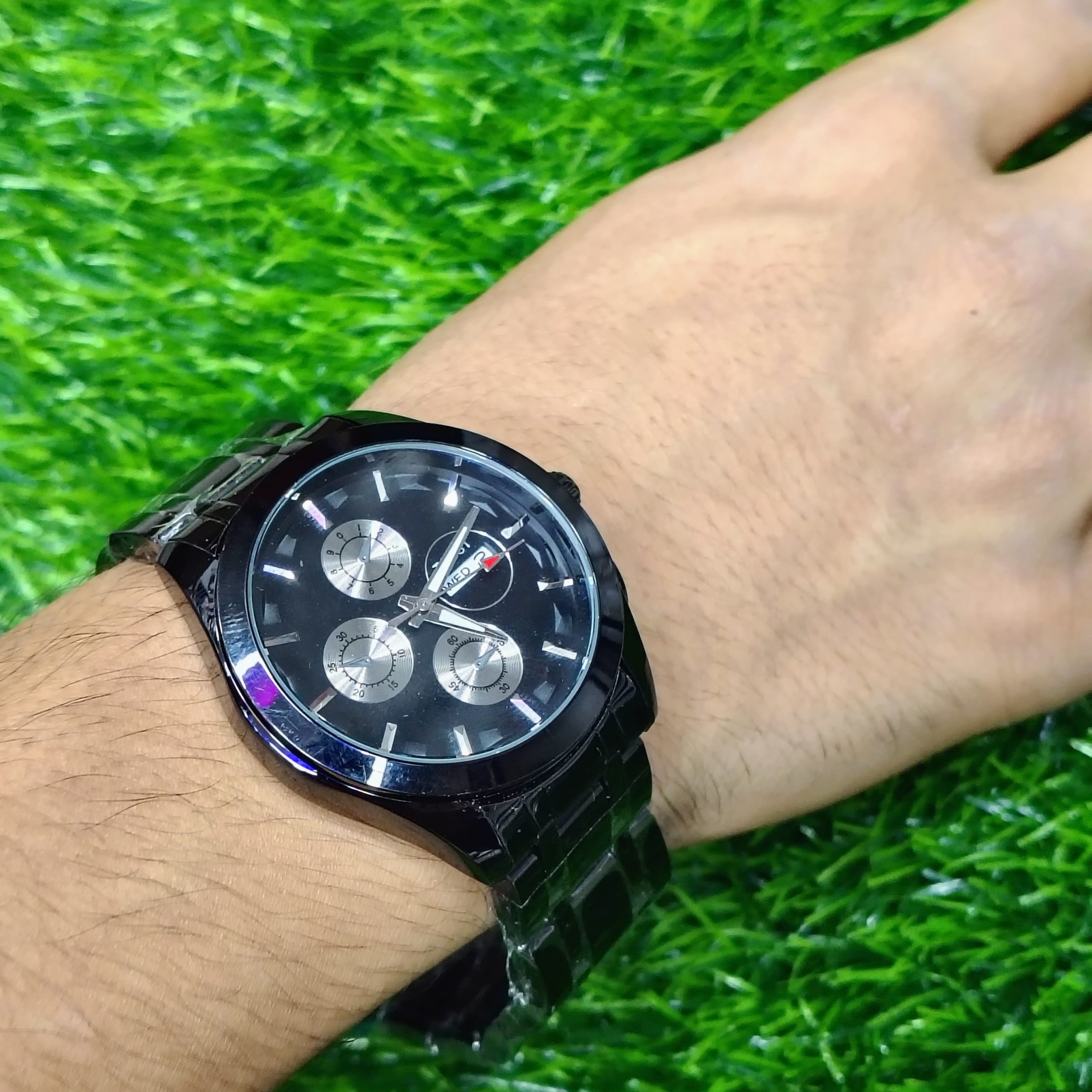 Product details of Analog Wrist chain Stainless Steel Watch Watch – BlackProductType: Analog WatchGender: MenDial color: same picDate View : YesBand Material Type: Stainless SteelCase Material: AlloyCase Shape: RoundBand Size: Men’sStandardDisplay Type: AnalogCondition: Brand New