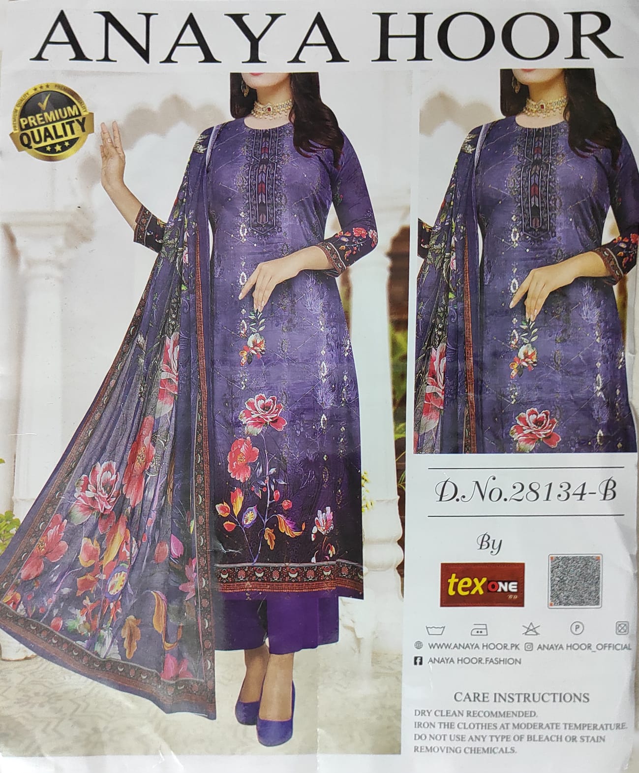Unstitched Digital printed cotton  3 PieceBrand: Anaya hoor Digital Printed with CarchupiColor: same as picture Dry cleaning recommend