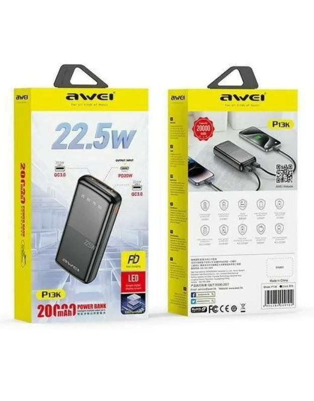 Awei P13K 22.5W PD Powerbank 20000mAh Fast Charging