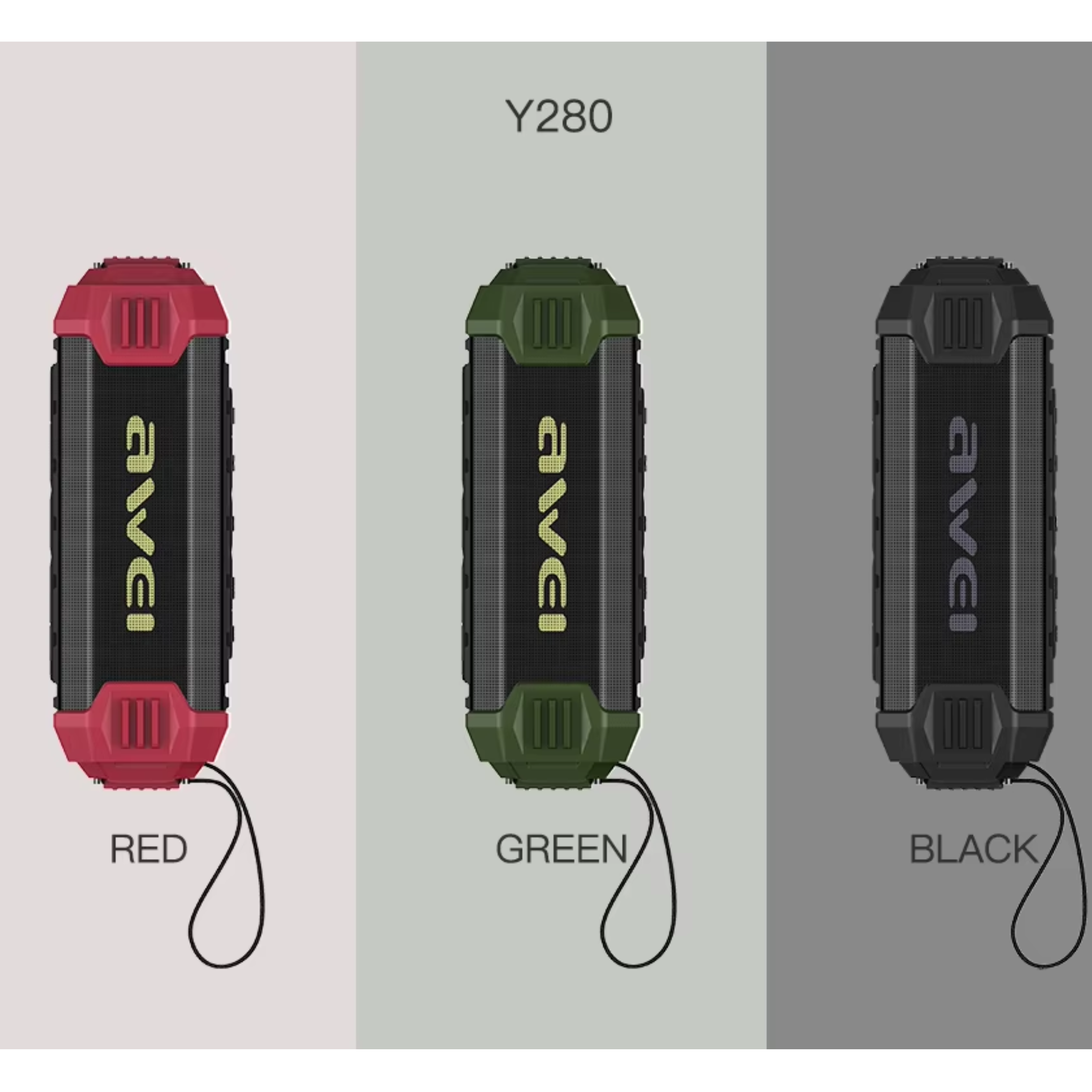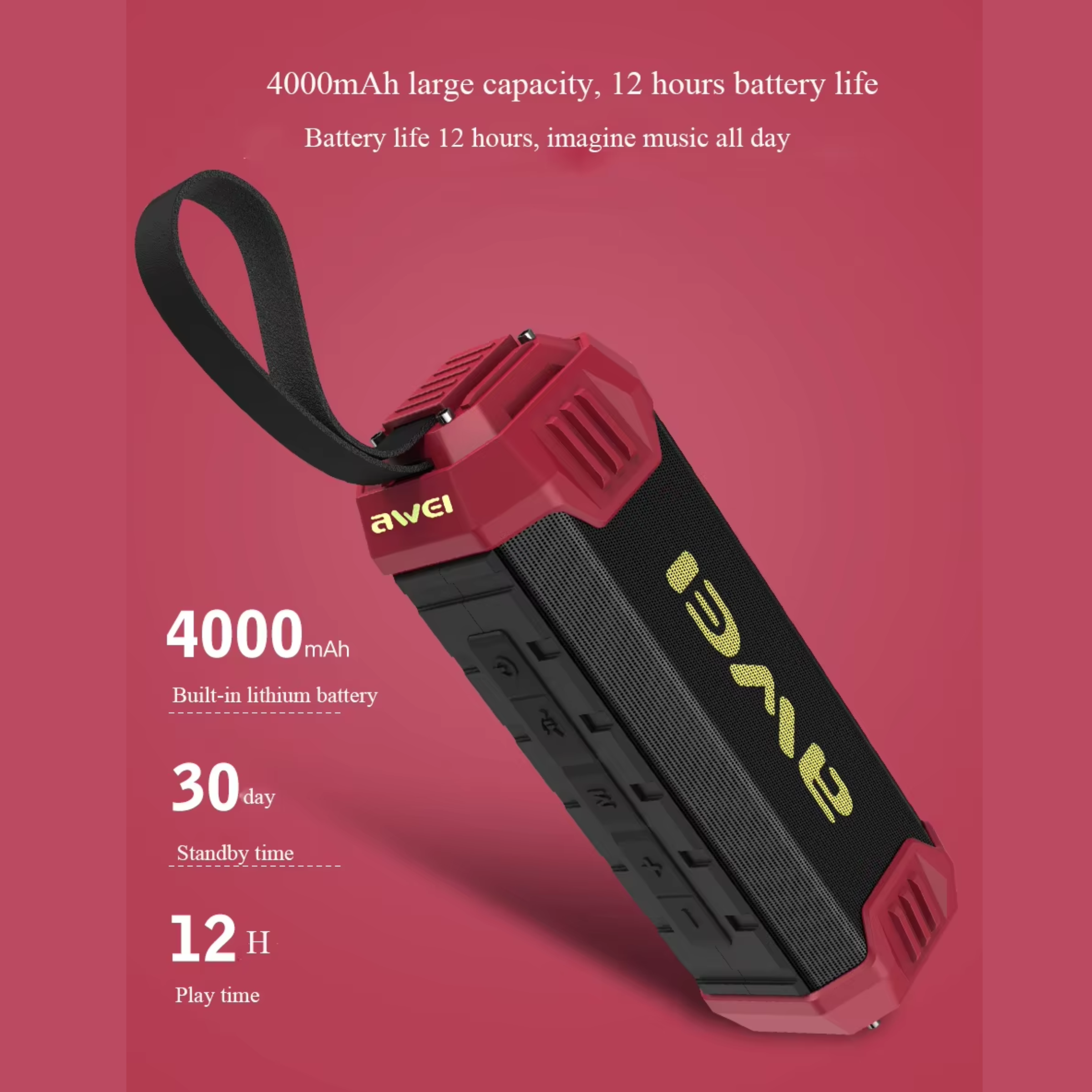 Feature:1.Brand: Awei2.Support Bluetooth: Bluetooth AUX、TF Card、 universal disk MAX 32G3.Support USB Audio Card ,be able to connect two devices at the same time.4.Support iOS system battery display function5. Support TF card APE, FLAC, MP3, WAV, WMV music format.6.Support USB Audio Card ,be able to connect two devices at the same time.7.Portable for outdoor 8.IPX4 waterproof,wireless speaker+power bankBluetooth Version: V5.0Track system: Stereodual stereo track)Battery capacity: 4000mAh/3.7vDriver unit: 66mmDriver power: 8W*2Rated power: 16WFrequency range: 20Hz-20KHzColor: Black/Red/GreenCharging time: 4hMusic play time: 12hBluetooth support: A2DP/AVRCP/HSP/HFPInput voltage: DC5V,600mABluetooth frequency: 100Hz-20KHzRelated products