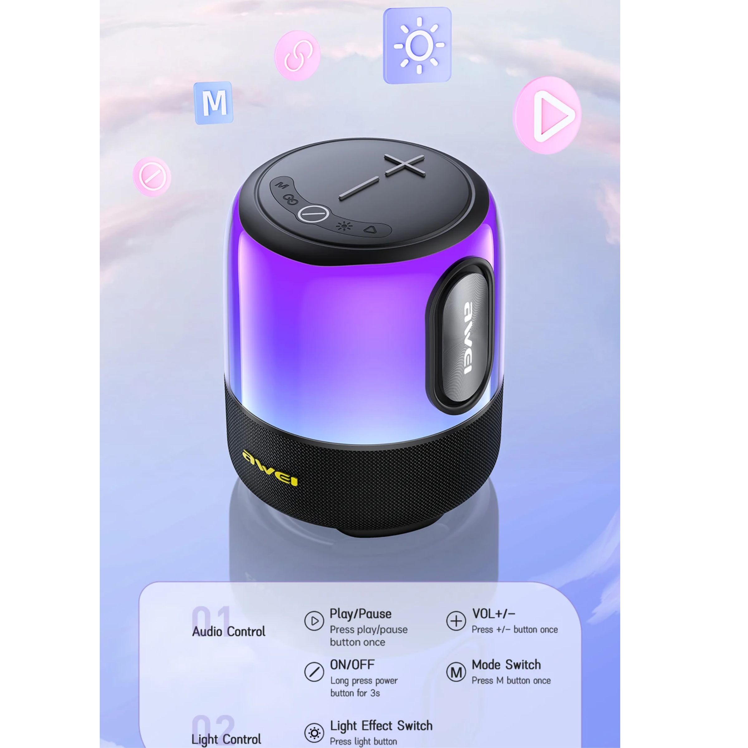 Specifications:1. Bluetooth scheme: 5.12. IPX5 waterproof rate, colorful breathing lights3. 4 play modes: Bluetooth, AUX, Micro-SD card, 1+1 Bluetooth connection in series4. Battery capacity: 4400mAh5. ABS, oil-injection material, physical button6. Size: 196 * 196 * 231.3mm7. Charging port: Type-C8. Transmission distance: 10m9. Play time: 5-6h10. Charging time: 5hWaterproof rate: IPX51+1 TWS connection in series: 2 speakers can be wirelessly connected in series to form a 2.0 sound effectAccessories: User Manual, USB Cable
