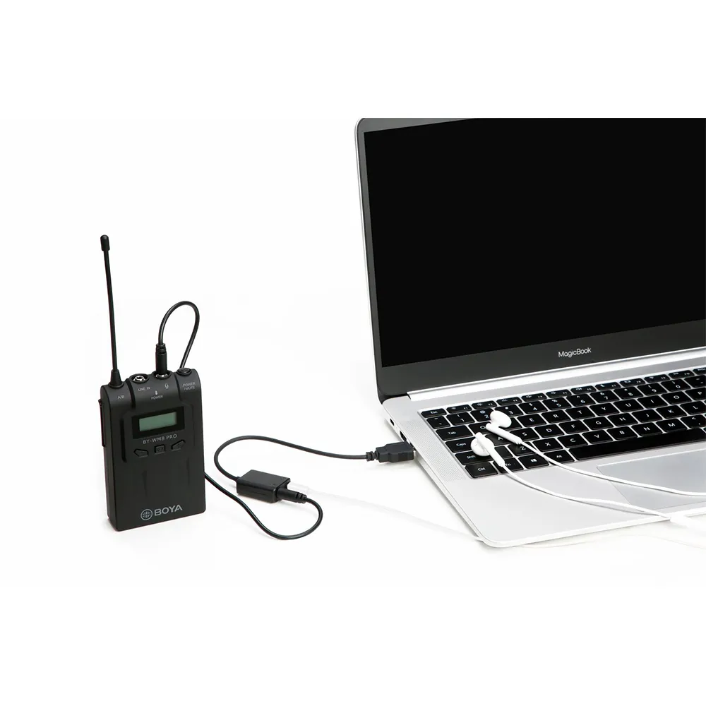 Specification Product NameBoya BY-EA2L USB Sound AdapterBrandBoyaTypeUSB Audio AdapterCompatibilityComputers/Laptops with USB portInterfaceUSB 2.0 Type-APorts• 3.5mm Microphone Input Jack • 3.5mm Headphone Jack • USB 2.0 Type-AFunctionality• Connects microphone and headphone via USB • Acts as a bridge between mic & computer • Allows simultaneous mic input and audio outputUse CasesVideo meetings, online classes, livestreaming, podcasts, and general audio communicationCompatible DevicesLavalier microphones, wireless microphone receivers, headsetsBuildCompact, lightweight, portable designPerformanceProvides stable audio transmission with minimal setupWarranty2 Years Brand Warranty