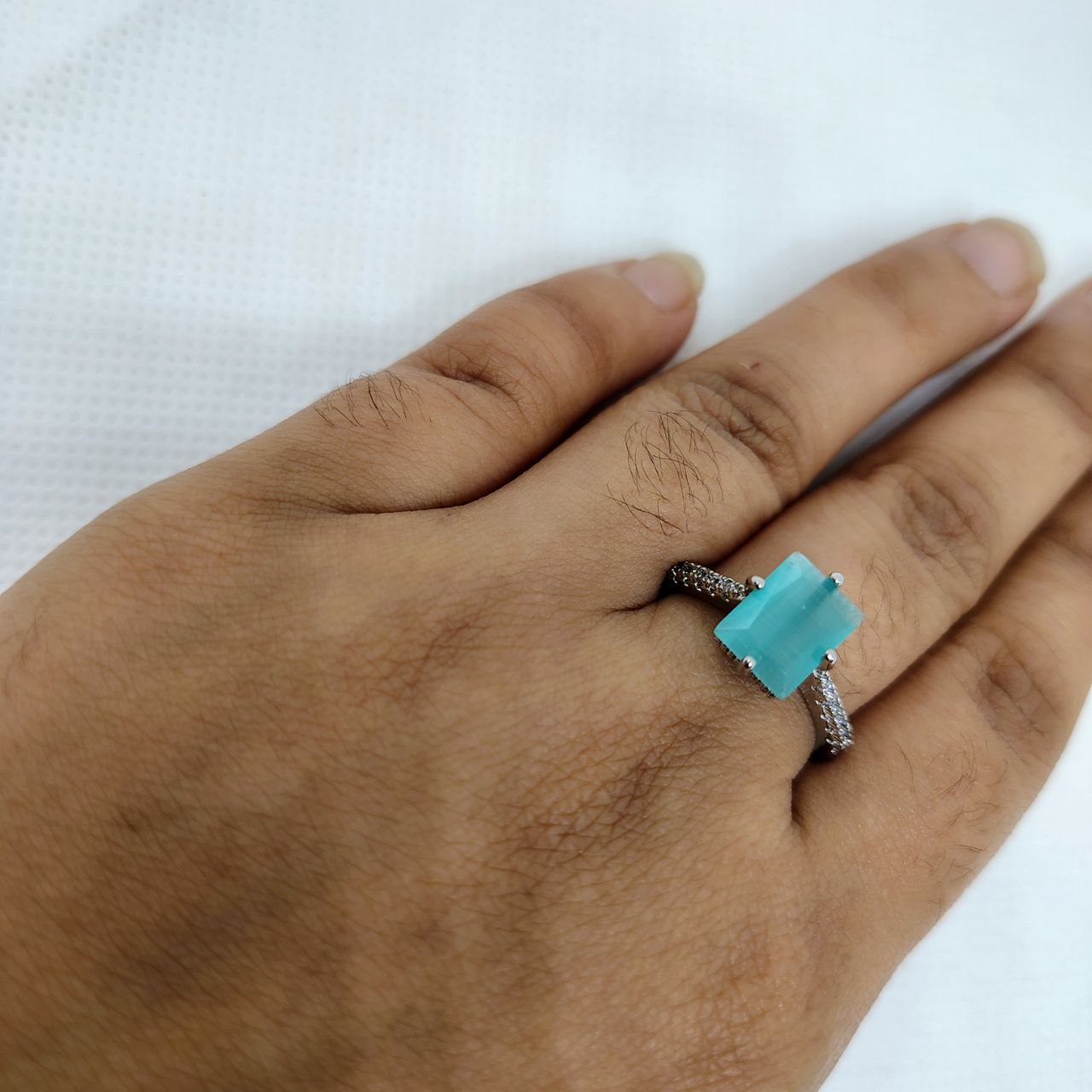 অবশ্যই! 💙✨ ছবিতে একটি সুন্দর পান্না কাট-এর সবুজকান্তমণি আংটি দেখা যাচ্ছে, যা এক মনোরম পরিবেশে পরিধান করা হয়েছে। 💍🌿 উজ্জ্বল নীল রঙের পাথরটি যেন এক টুকরো গভীর সমুদ্র, যা আলোয় ঝলমল করছে। পান্না কাট হওয়ার কারণে পাথরটির প্রতিটি দিক থেকে আলো প্রতিফলিত হয়ে এক আকর্ষণীয় ঔজ্জ্বল্য সৃষ্টি করেছে। ✨আংটির ব্যান্ডটি সম্ভবত রূপা বা সাদা সোনার তৈরি, যা পাথরটির উজ্জ্বল সবুজ  রঙের সাথে সুন্দরভাবে মিশে গেছে। ব্যান্ডের একপাশে ছোট ছোট একসারি সাদা পাথর বসানো রয়েছে, যা আংটির সৌন্দর্যকে আরও বাড়িয়ে তুলেছে। এই ছোট পাথরগুলো সম্ভবত হীরা বা জারকন হতে পারে, যা সবুজকান্তমণি রাজকীয় ঔজ্জ্বল্যের সাথে এক দারুণ ঔজ্জ্বল্য যোগ করেছে। 💎🌟সবুজকান্তমণি সাধারণত সততা, বিশ্বাস এবং শান্তির প্রতীক হিসেবে বিবেচিত হয়। 💙🕊️ এই আংটিটি যে কোনো বিশেষ অনুষ্ঠানে পরার জন্য উপযুক্ত, আবার এটি দৈনন্দিন জীবনেও আপনার ব্যক্তিত্বের একটি অংশ হয়ে উঠতে পারে। এটি আপনার পোশাকে এক নতুন মাত্রা যোগ করবে এবং আপনার সৌন্দর্যকে আরও আকর্ষণীয় করে তুলবে। 😍এই ধরণের ক্লাসিক অথচ আধুনিক ডিজাইন যে কোনো বয়সের নারীর হাতেই মানানসই। এটি একটি অসাধারণ উপহার হতে পারে আপনার প্রিয়জনের জন্য, যা তাদের প্রতি আপনার আন্তরিক ভালোবাসা ও যত্নের পরিচয় দেবে। ❤️🎁আংটির মসৃণ গঠন এবং উজ্জ্বল রঙ বুঝিয়ে দেয় যে এটি উন্নত মানের উপাদান দিয়ে তৈরি। এটি শুধু একটি গয়না নয়, এটি একটি স্মৃতিচিহ্ন যা সযত্নে রাখা যেতে পারে। ✨সব মিলিয়ে, এই পান্না কাট  সবুজকান্তমণি  আংটিটি এক অসাধারণ সৃষ্টি। এর গভীর নীল রঙ এবং চারপাশের ছোট পাথরগুলোর চিকচিক এটিকে সত্যিই অনন্য করে তুলেছে। 💙💍🌿