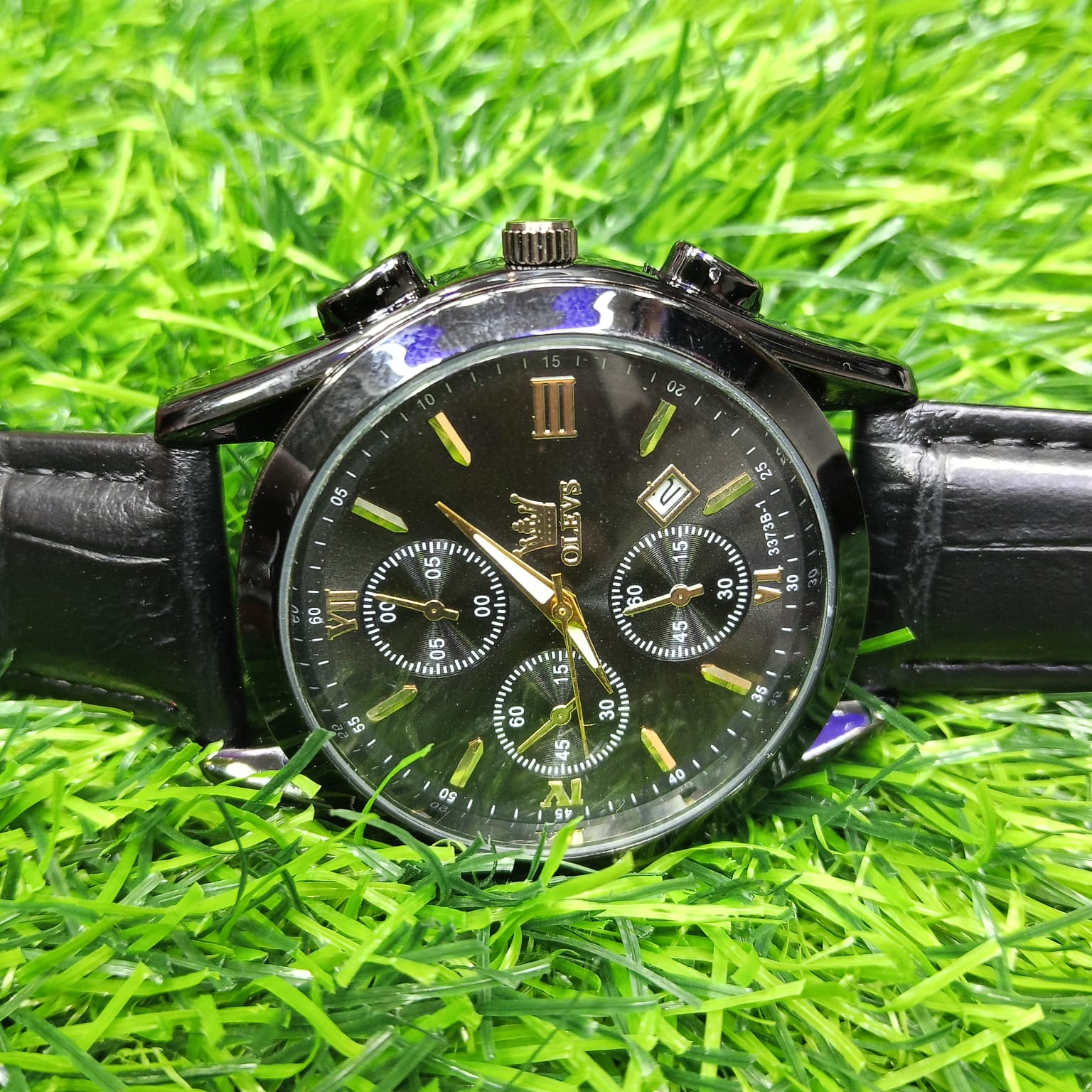 Feature:High quality leather band gives you a new classic definition.Quartz watch case makes the watch more durable.Daily water resistance (not for showering and swimming).Hand winding mechanical movement lets you wear the watch anytime.Color may not appear as exactly as in real life due to variations between the computer monitors and necked eye color difference.Specification:Brand: OLEVS Master CopyBand Length: 24cmStyle: Fashion & CasualMovement: QUARTZWater Resistance Depth: 3BarClasp Type: NONECase Material: STAINLESS STEELCase Thickness: 11.5mmDial Window Material Type: HardlexItem Type: Quartz WristwatchesDial Diameter: 40mmBand Width: 20mmCase Shape: ROUND