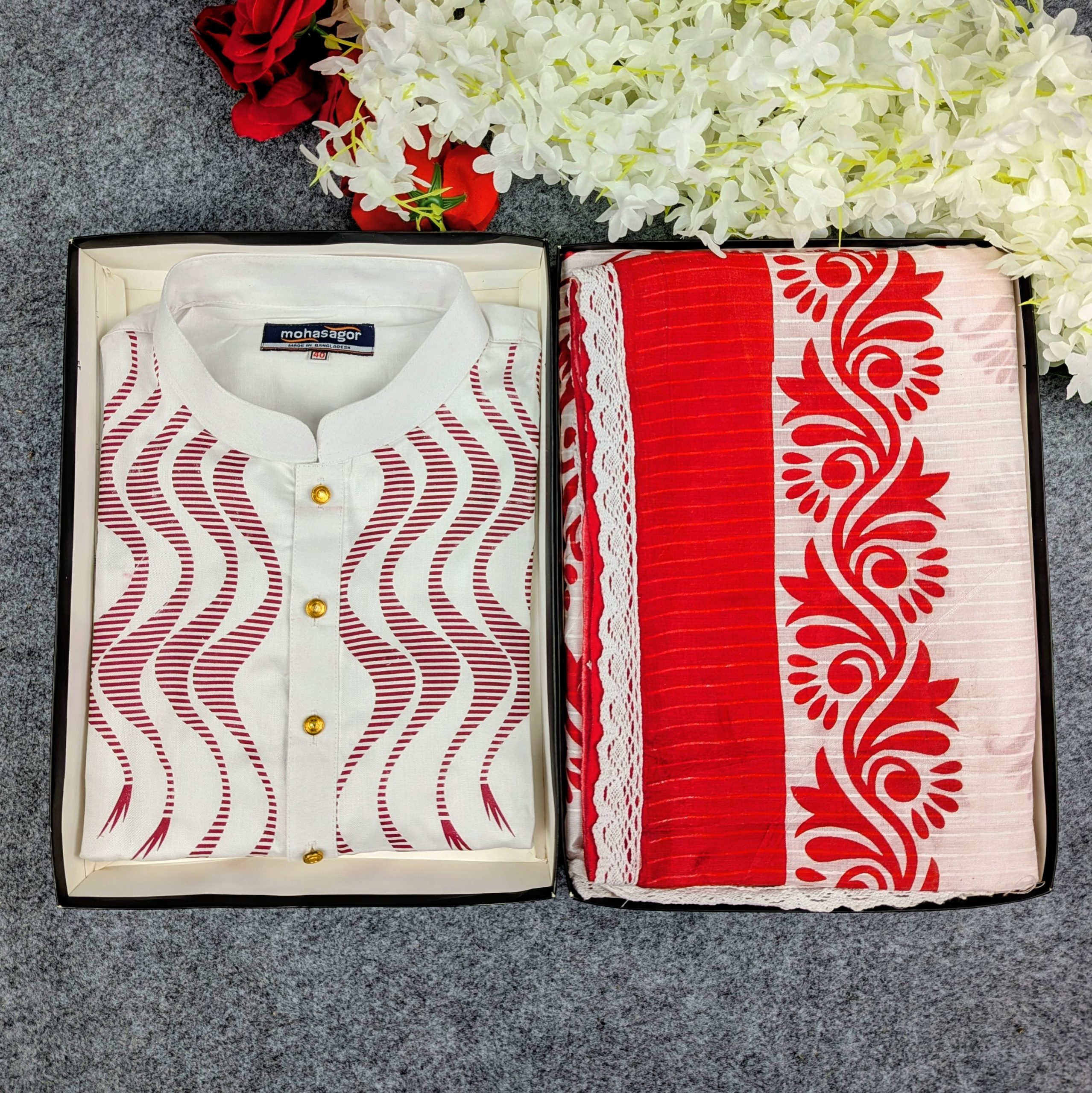 ✨ Festive Special Couple Set – Puja Edition ✨ এই পূজোয় আপনজনের সাথে একসাথে ঝলমল করতে হাজির আমাদের Festive Special Couple Set।যেখানে থাকছে—👗 শাড়ি: হাফ সিল্কে স্ক্রিন প্রিন্ট, যা দেবে আভিজাত্যের ছোঁয়া।👕 পাঞ্জাবি: কটন ফ্যাব্রিকে তৈরি, আরামদায়ক এবং স্টাইলিশ। 🎨 বিশেষত্ব: লাল-সাদা ম্যাচিং কালার, যা পূজোর আবহকে করে তুলবে আরও উজ্জ্বল ও প্রাণবন্ত। এই সেটটি শুধু পোশাক নয়, বরং আপনাদের একসাথে কাটানো উৎসবের মুহূর্তগুলোকে