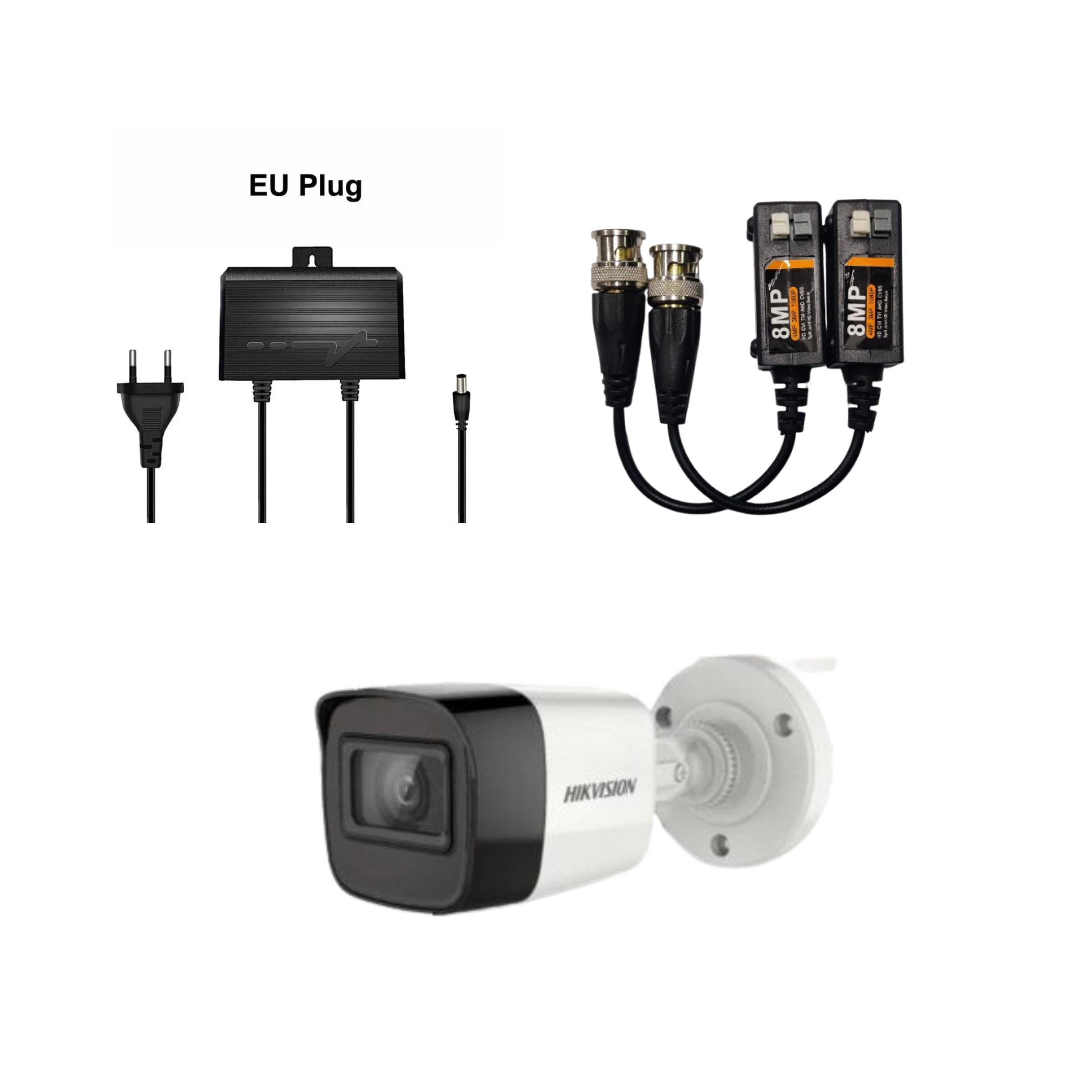 HIKVISION(DS-2CE16D0T-IP-ECO) HD 1080 TURBO HD IR 2 MP BULLET CAMERA/20M IR DISTANCE WITH CCTV POWER ADAPTER 12V 2AM AND VIDEO BELUN 8 MP HD SUPPORTED