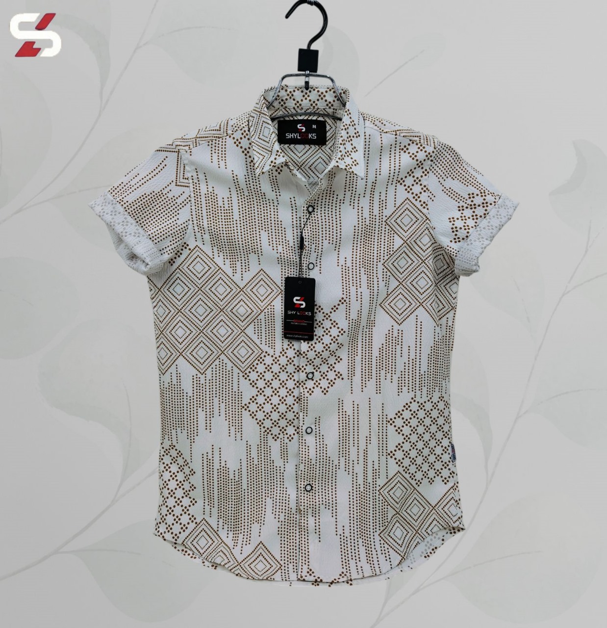 Luxury Popcorn Half Sleeve Print Shirt- Shy Looks  Brand :- Shy Looks** Popcorn Cotton(Customised Fabrics)** Accurate Size Measurement  ** Export Quality Swing  * Color and quality 100% guarantee  * Comfortable for every season* China Show Button  *Slim FitSize:- M.L.XLM : (Chest-39″ inch, Length-28″ inch)L : (Chest-41″ inch, Length-29″ inch)XL : (Chest-43″ inch, Length-30″ inch)