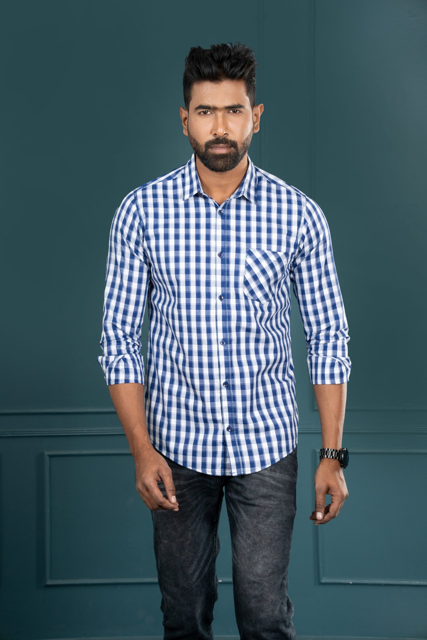 Men’s  long sleeve check shirtFabric: cottonType:   stander folding Size measurement :SizeChestLengthM4028L4229XL4430XXL4631