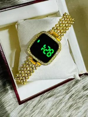 Specifications:Product Type :Wrist WatchMaterial :Stainless SteelStyle :Fashion & CasualClasp Type :Hook BuckleMovement :DigitalWater Resistance Depth :3BarColor : Golden