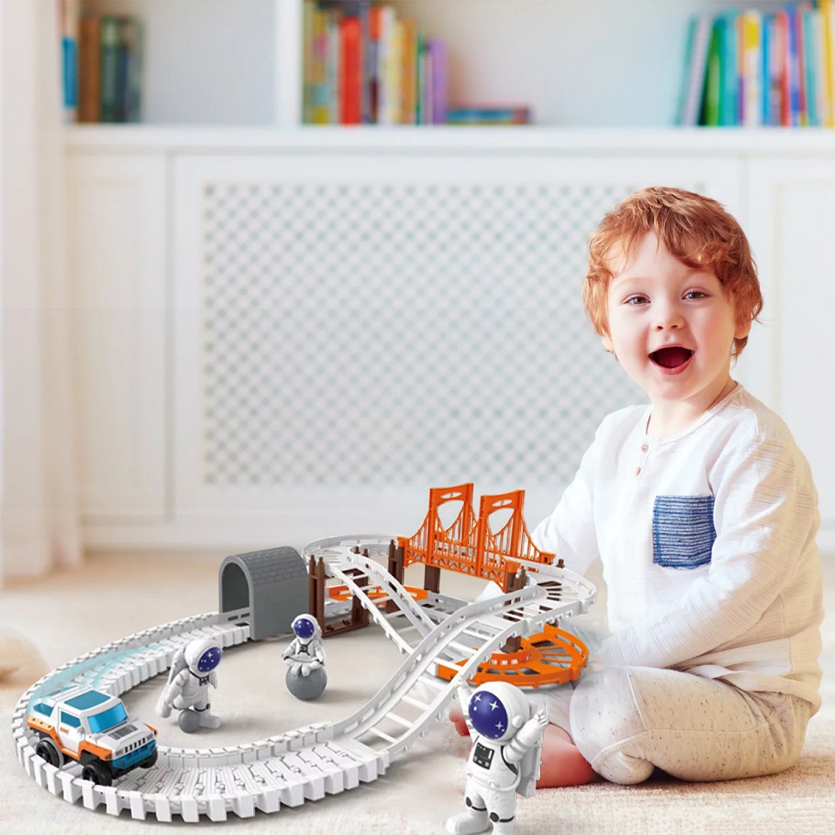 Product details Features:DIY Combination: The dinosaur track set has 39/77 flexible tracks, which can be easily combined, twisted and adjusted in different ways. Children will play according to their own rules, have endless choices, and have unlimited possibilities when building different road tracks, so as to have a good indoor time.High Quality Material: The edges and corners of the rail car track are polished so as not to hurt the baby’s hands. Made of safe and harmless materials, the toy train suitable for 3-12-year-old boys can definitely ensure the safety of your children at any time. Well made dinosaur toys are the perfect gift for your children to have a happy time.Outer Space Theme Rail Car: Let your children experience the adventure of outer space. Children can drive cars over bridges, rush to meet astronauts figures. What an exciting adventure!Electrical Car: The toy set includes 1 electrical racing car. Bring children an excellent visual experience. You can control it racing on the bridge.Perfect Gift: Flexible track toy set with outer space theme packaging. It is not only a beautiful gift for the boy’s birthday and Christmas, but also can improve the child’s practical ability and bring more communication between parents and children.