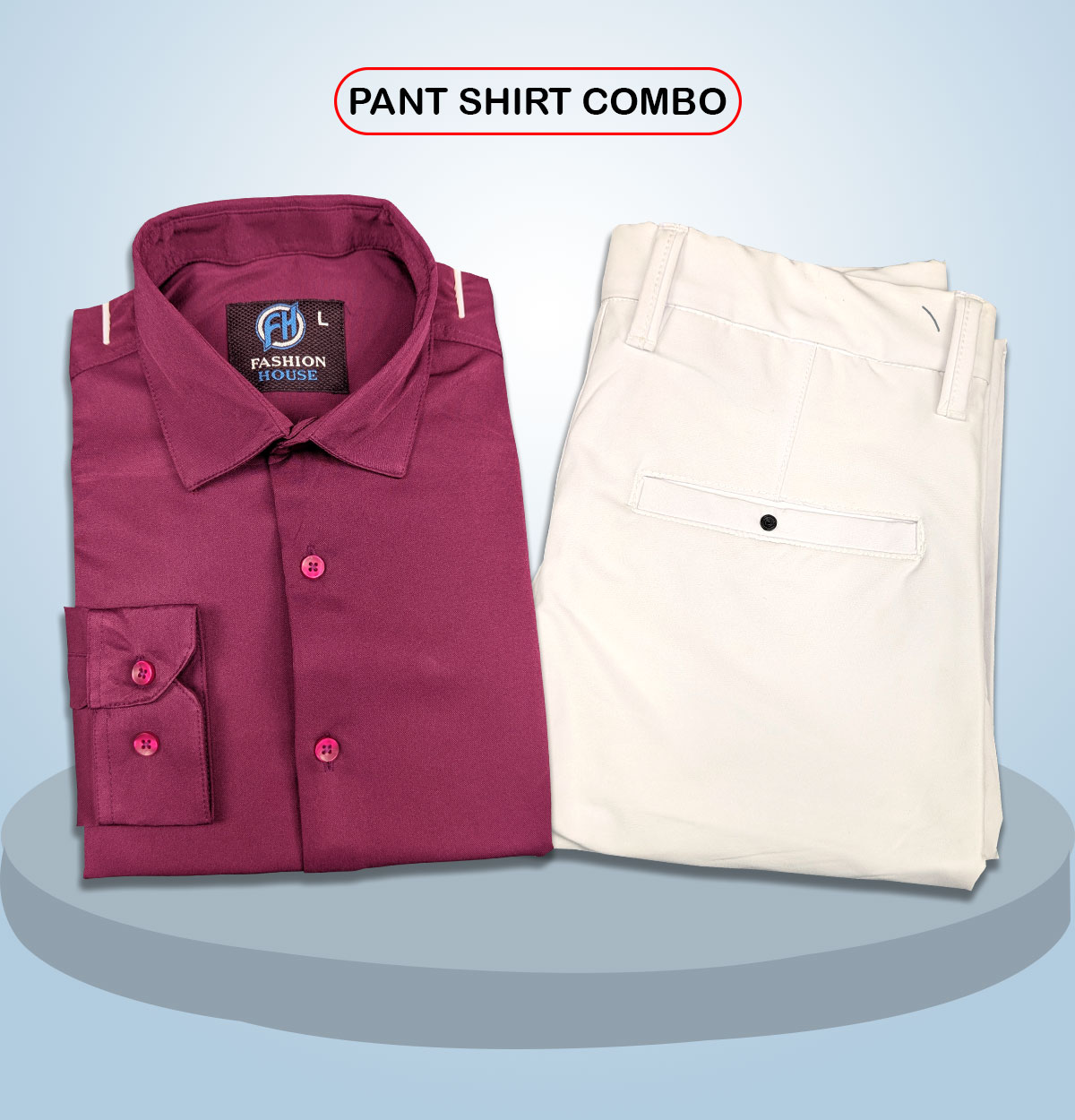 Premium Shirt & Pant Combo (Formal / Casual) (Maroon & White)