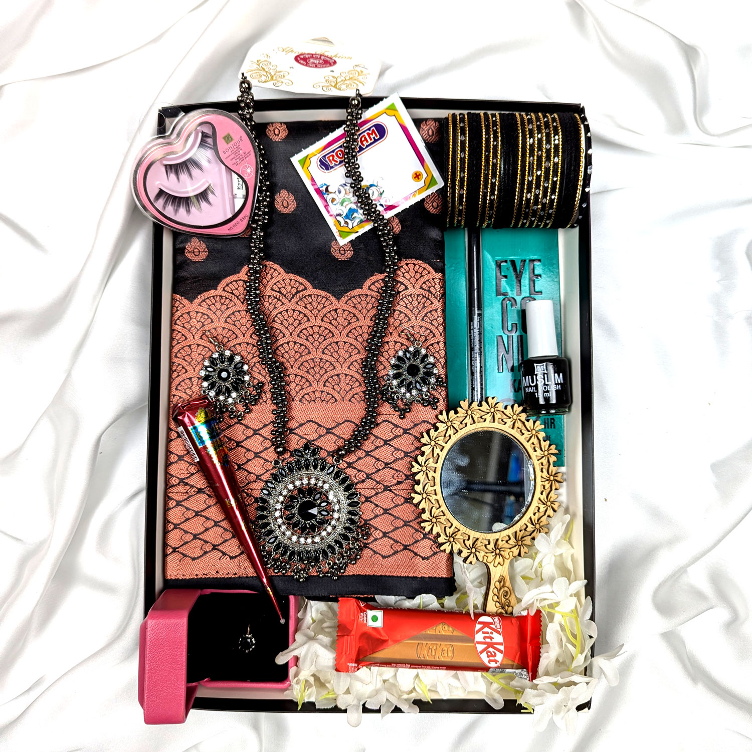 Premium Silk Katan Saree Combo Pack – Black ✨💌 ভালোবাসা শব্দে নয়, প্রকাশ পাক উপহারে 💌✨ প্রিয়জনের মুখে হাসি ফোটানোর জন্য আসুক একটি ভিন্ন আয়োজন।বিশেষ মুহূর্তে বিশেষ মানুষকে দিন প্রিমিয়াম সিল্ক কাতান শাড়ির কম্বো সেটযেখানে প্রতিটি আইটেম বেছে নেওয়া হয়েছে যত্ন আর ভালোবাসার ছোঁয়ায়। 💕 📦 মোট 15 +আইটেমের কম্বো সেটে থাকছে 👗 প্রিমিয়াম সিল্ক কাতান শাড়ি💍 ম্যাচিং গলার হার, কানের দুল ও চুড়ি💅 ম্যাচিং নেইল পলিশ, ও চাঁদ টিপ💍 ফিঙ্গার রিং উইথ বক্স , উডেন আয়না, কাজল ও মেহেদি 👁️ আইল্যাশ, গাজরা🍫 কিটক্যাট চকলেট 🎁 জন্মদিন, এনিভার্সারি কিংবা যেকোনো বিশেষ দিনে প্রিয়জনের জন্য সারপ্রাইস হিসেবেএই এক সেটেই থাকুক আপনার সাধ্যের মধ্যে সবটুকু। 👉 এখনই অর্ডার করুন, আর প্রিয়জনকে দিন হাসি আর ভালোবাসায় ভরা এক অনন্য উপহার 🌸