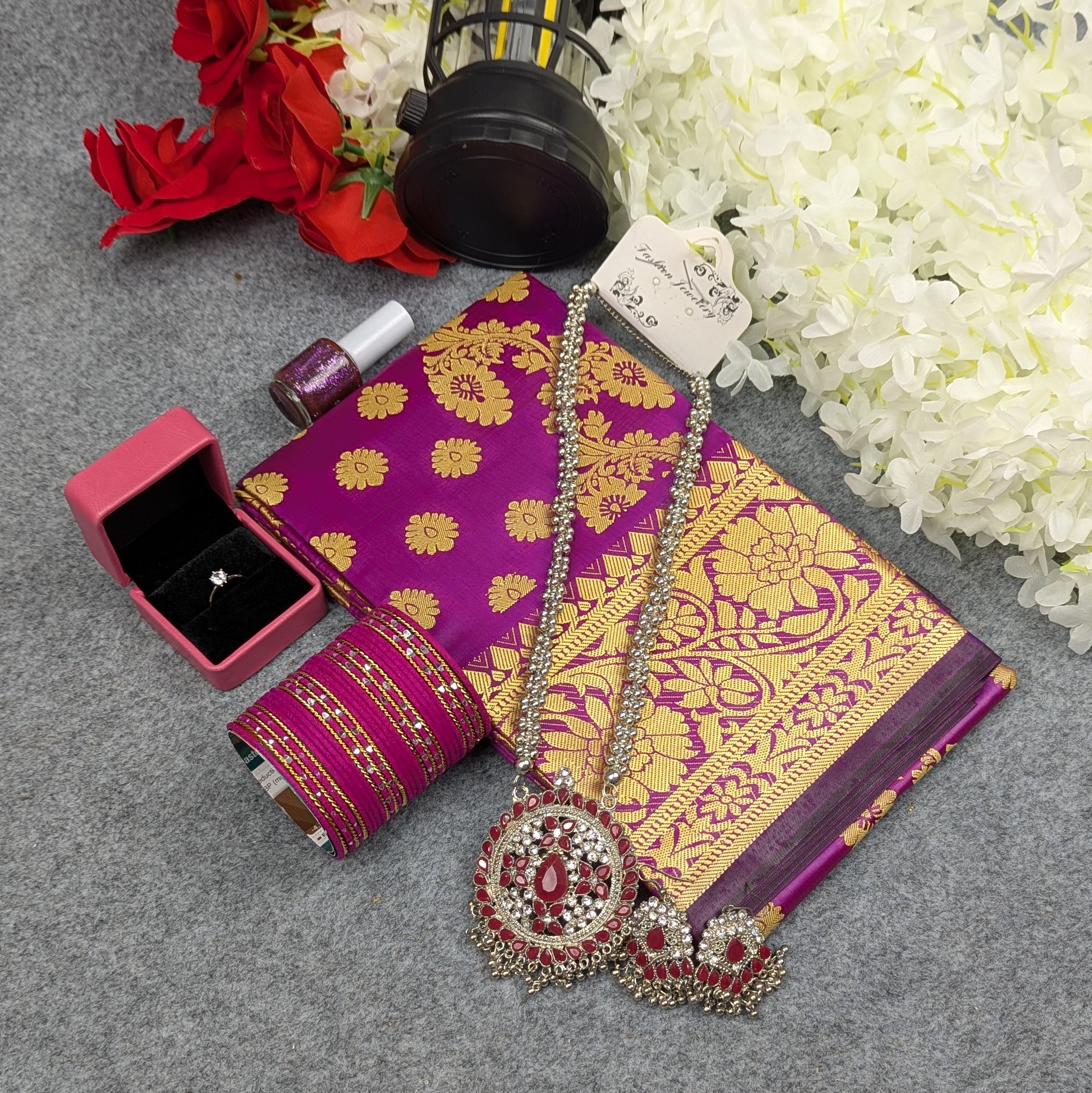 Premium Silk Katan Saree Combo ✨💌 ভালোবাসা শব্দে নয়, প্রকাশ পাক উপহারে 💌✨ প্রিয়জনের মুখে হাসি ফোটানোর জন্য আসুক একটি ভিন্ন আয়োজন। বিশেষ…