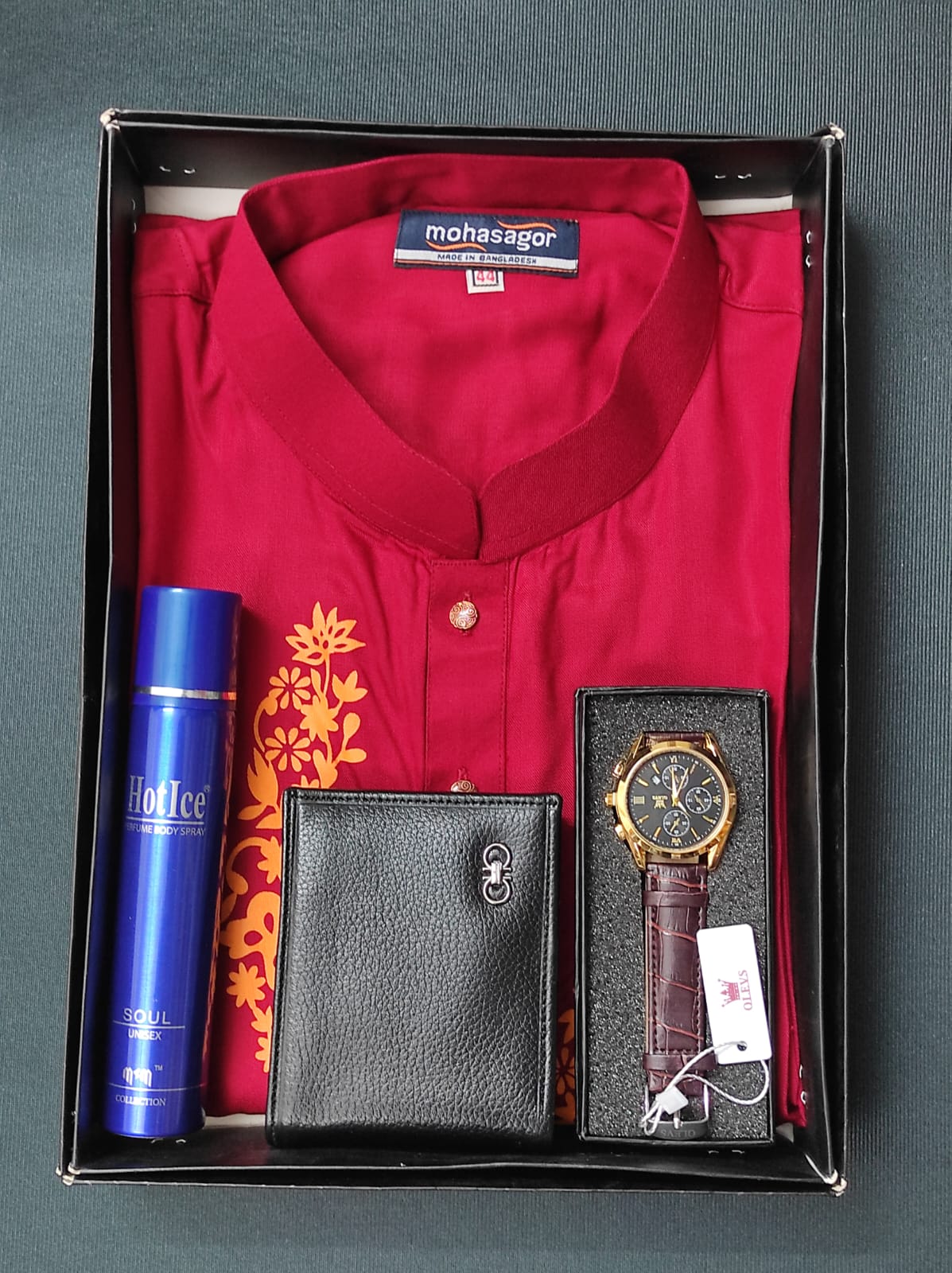 Panjabi Details:Brand: Mohasagor100% Original Cotton Imported Fabrics.Handcuff Style on Hand.Premium Show Button.Quality Controlled (QC) Finishing.Very Own Unique Design.Measurement:40 = Length 40″, Chest 42″42 = Length 42″, Chest 44″44 = Length 44″, Chest 46″Perfume Details:Brand: Hot iceItem form: SprayBrand: HOT ICEItem form: Spray100 MLWatch Details:Artificial Leather Chronograph Wrist Watch For Men (Master Copy)Band Length: 20cmMovement: QUARTZClasp Type: Hook BuckleOrigin: CN(Origin)Case Material: AlloyCase Thickness: 11.5mmDial Window Material Type: CoatedGlass Item Type: Quartz WristwatchesBand Material Type: LeatherDial Diameter: 40mmModel Number: 2872Band Width: 11mmCase Shape: RoundFeature: Back LightFeature: Shock ResistantFeature: Luminous Wallet Details:Easy to transport: It is easy to use, simple and practical, and does not take up a lot of space.Best choice: this leather card wallet is the best choice for excellent gift choice for birthday, anniversary, valentine’s day gifts and so on.Functional: High quality pure leather, multilayer money, soft and elegant.Material: All Genuine, High Quality Materials UsedColor: As like picture