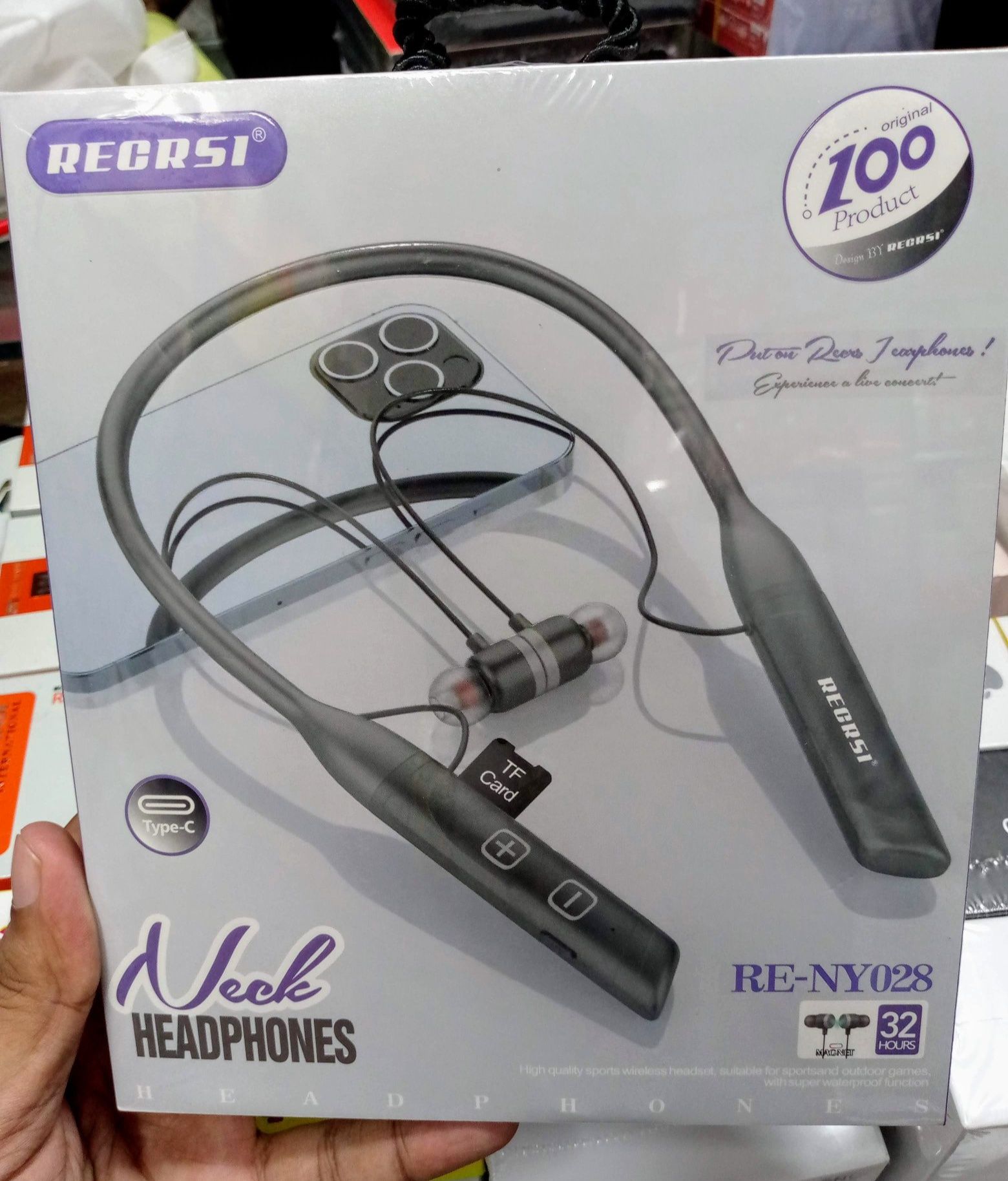 Brand Name: RECRSI Product Type: Neckband Earphones Model: RE-NY028 Wireless : 5.1 Talking time: Up to 32 hours Music Time।: Up to 32 hours Standby Time: Over 32 hours Charging Time: 1-2 hours Charging type: USB Battery : 400mAh Charging voltage: DC 5V