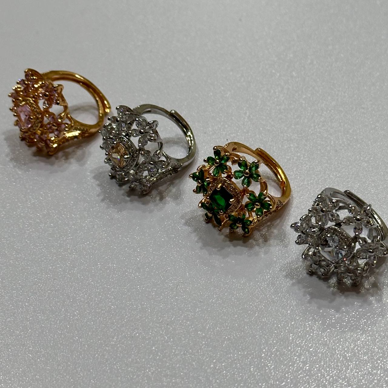 🛍️ পণ্যের নাম:  Royal Bloom Designer Stone Ring – Premium Collection — 📝 পণ্যের বিবরণ (Product Description): ✨ রয়্যাল লুকের ফুল-ফুল ডিজাইনের রিং…