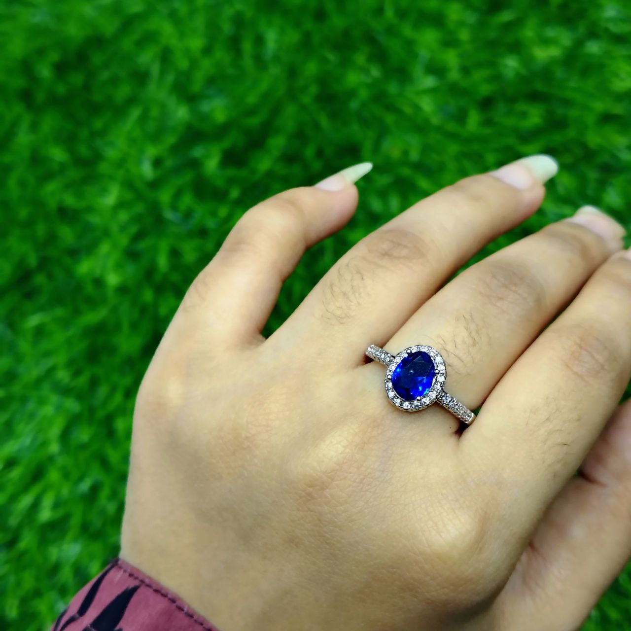 Royal Blue Teardrop Elegance Ring (Description): A beautifully crafted ring featuring a dazzling teardrop-shaped royal blue stone, surrounded by shimmering clear stones on a polished silver-tone band. Perfect for adding a touch of luxury to any outfit, whether it’s a formal event or everyday elegance.