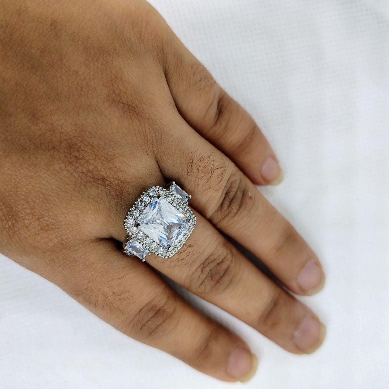 ๐ธ Description: Step into elegance with our Royal Prism Multi-Stone Ring, a bold expression of color and luxury. Designed to captivate from every angle, this ring features a large radiant-cut center stone that reflects multiple shades like golden, peach, and soft amber, depending on the light. The shimmering stone is framed by a halo of fine crystals, set in a silver-polished base that enhances its vibrant charm. โ Eye-catching multi-color gemstone โ Classic square cut for a royal touch โ Surrounded by micro-paved CZ crystals โ Ideal for evening wear, parties, or gifting ๐ Elegant packaging included