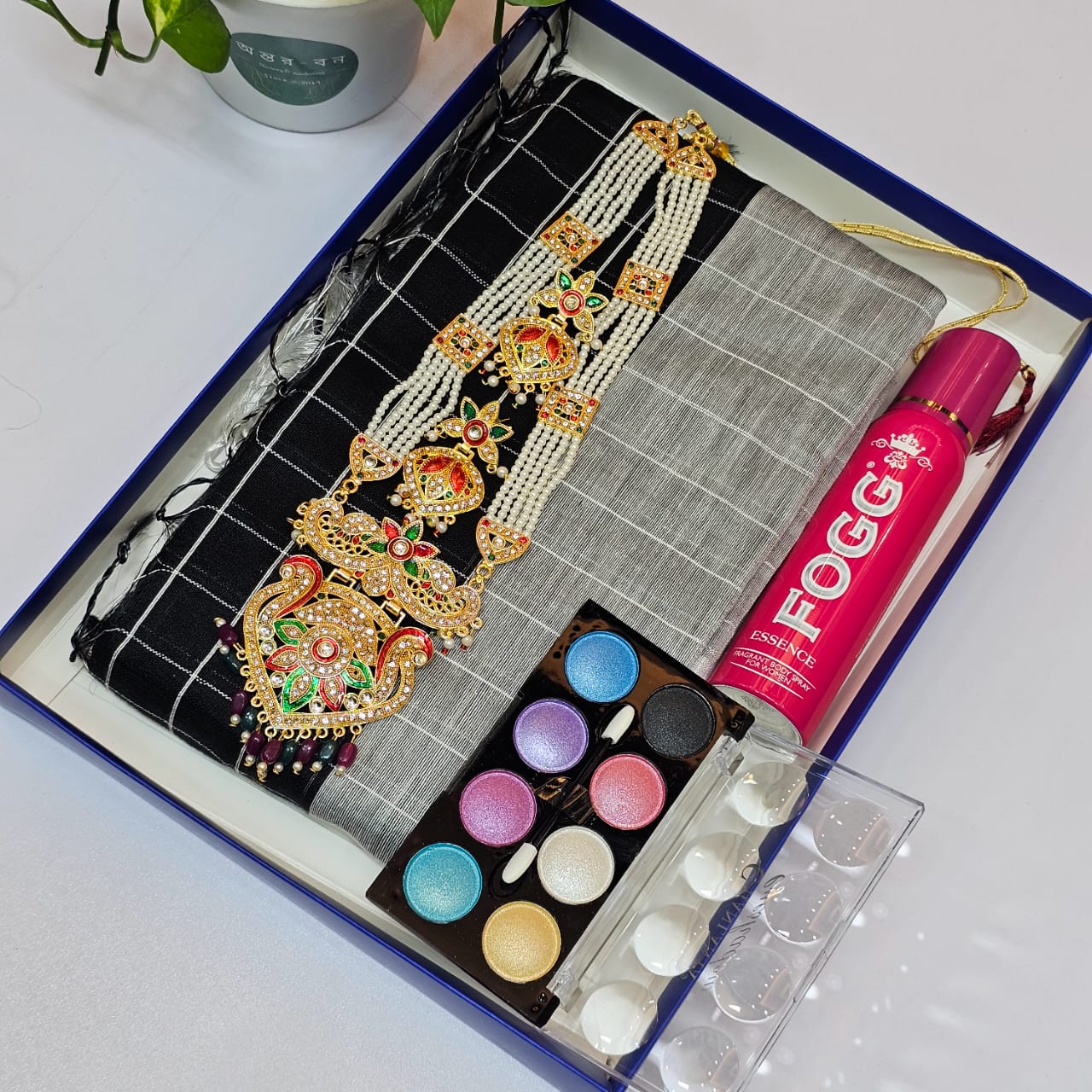 মেয়েদের জন্য স্টাইলিশ ও আকর্ষণীয় কম্বো প্যাক: ফ্যাশন ও সৌন্দর্য এক সাথে এই সেরা কম্বো প্যাকে আপনি পাচ্ছেন: 1. একটি ১২ হাতের সুতি শাড়ি: আরামদায়ক ও ট্রেন্ডি, যেকোনো অনুষ্ঠান প্ররিদানের জন্য সেরা।2. কানের দুল সহ একটি নেকলেস সেট: আপনার সাজের গ্ল্যামার বাড়ানোর জন্য উপযুক্ত এই জুয়েলারি সেট।3. ১ টি মেকআপ বক্স: দৈনন্দিন মেকআপ থেকে শুরু করে বিশেষ অনুষ্ঠানের প্রস্তুতি, এই বক্সে থাকছে আপনার প্রয়োজনীয় কিছু।4. একটি পারফিউম: দীর্ঘস্থায়ী সুগন্ধ, যা আপনার ব্যক্তিত্বকে করবে আরো আকর্ষণীয়। এই কম্বো প্যাকটি মেয়েদের জন্য একটি পূর্ণাঙ্গ ফ্যাশন ও বিউটি প্যাকেজ, যা আপনাকে দেবে একসাথে স্টাইল ও সৌন্দর্য সংমিশ্রন ।#makeup#ladies product কম্বো প্যাক এর মধ্যে রয়েছে:#একটি সুতি শাড়ি (১২ হাত);#কানের দুল সহ একটি নেকলেস সেট;# 1 টি মেকআপ বক্স;#এবং একটি পারফিউম;