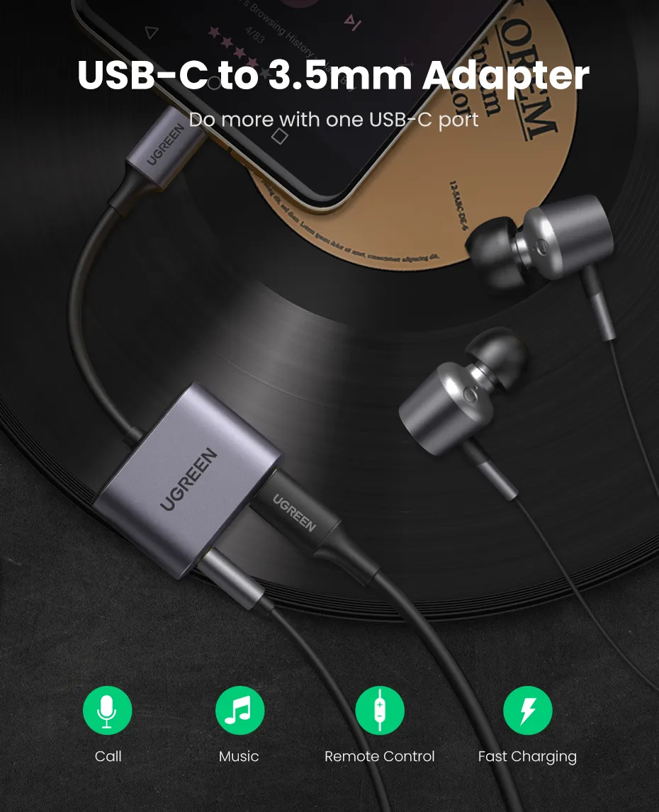 UGREEN CM231 (60164) 2-in-1 USB C to 3.5mm Adapter